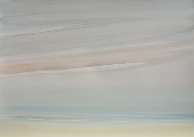Depuis une dizaine d’années mes tentatives s’orientent toujours davantage, à travers notamment l’aquarelle, vers ce que j’appelle le presque rien, à la recherche des couleurs de la lumière.