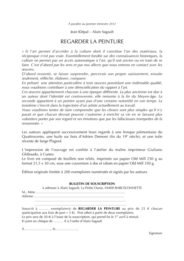 On this occasion took place the first presentation of the fourth book issued from the complicity between Jean Klépal and Alain Sagault, « Regarder la peinture ».