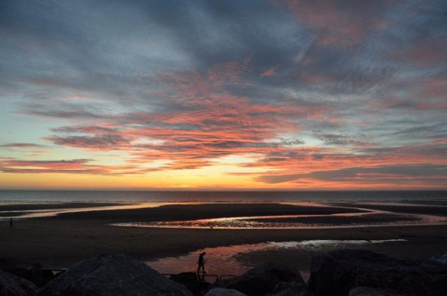 Coucher de soleil absolument somptueux, ce soir-là, sur une mer lumineuse et nacrée.