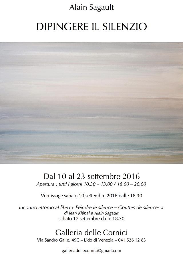 Dans le prolongement de ma précédente exposition vénitienne, QUASI NIENTE, I COLORI DELLA LUCE, merveilleusement accueillie en janvier 2013 par l’Alliance française de Venise dans ce lieu magique où elle a son siège, le Casino Venier., je proposais cette fois quelques-unes de mes aquarelles récentes autour d’un thème qui m’est essentiel et que Jean Klépal et moi avons abordé dans notre dernier livre (voir ci-dessous), un ouvrage bicéphale, les rapports de la peinture et du silence.