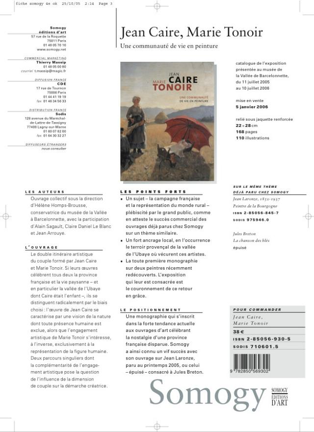 L’article qui suit est paru dans le Catalogue raisonné des œuvres du couple de peintres Jean CAIRE et Marie TONOIR, publié à l’occasion de l’exposition retrospective que leur a consacré Le Musée de la Vallée, à Barcelonnette.