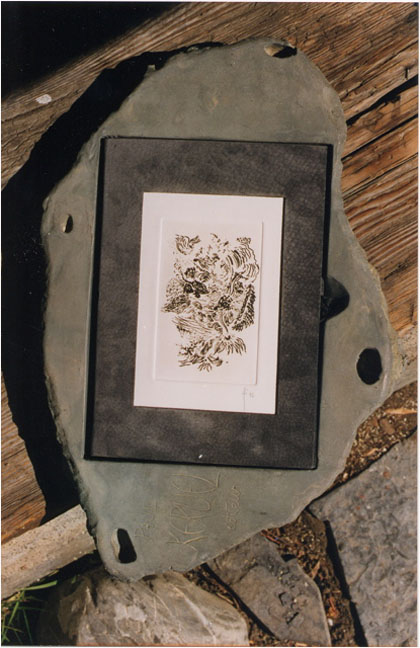 Créée tout spécialement par l’auteur et Mauricette David, relieur, pour le coffret-sculpture du Livre du caillou,