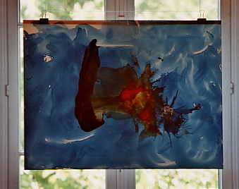 Pendus à des cordes à linge, ils bougent doucement, papiers peints en train de voyager dans l’air, proposant au passant leurs propres voyages intérieurs dans des fragments de nos univers, voyages en train de sécher, encore tout ruisselants de rêves...