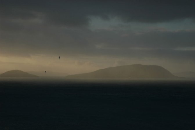 La lueur livide d’une aurore sans soleil émergeait à l’est des nuages amoncelés sur les collines. En sortant sur le pas de leur porte, les gens de Cill Rialaig eurent l’impression de distinguer à travers les bancs de brume qui planaient sur la baie des formes grises allongées presque au ras de l’eau.